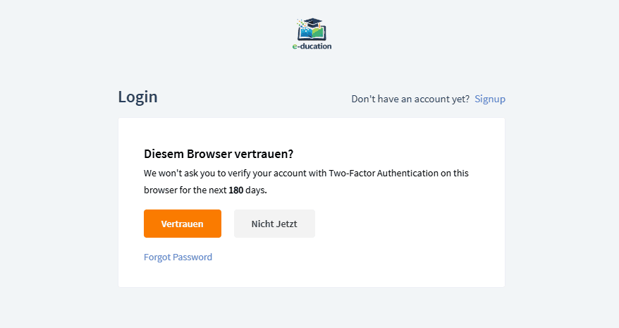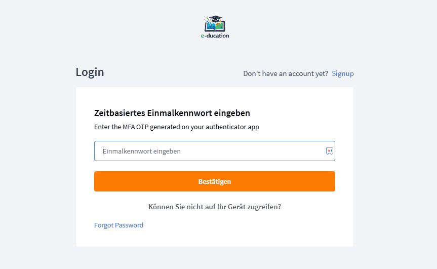 - Gib dein Passwort ein und klicke auf „ANMELDEN“. Das System fordert dich auf, den Code aus deiner Authentifizierungs-App einzugeben.